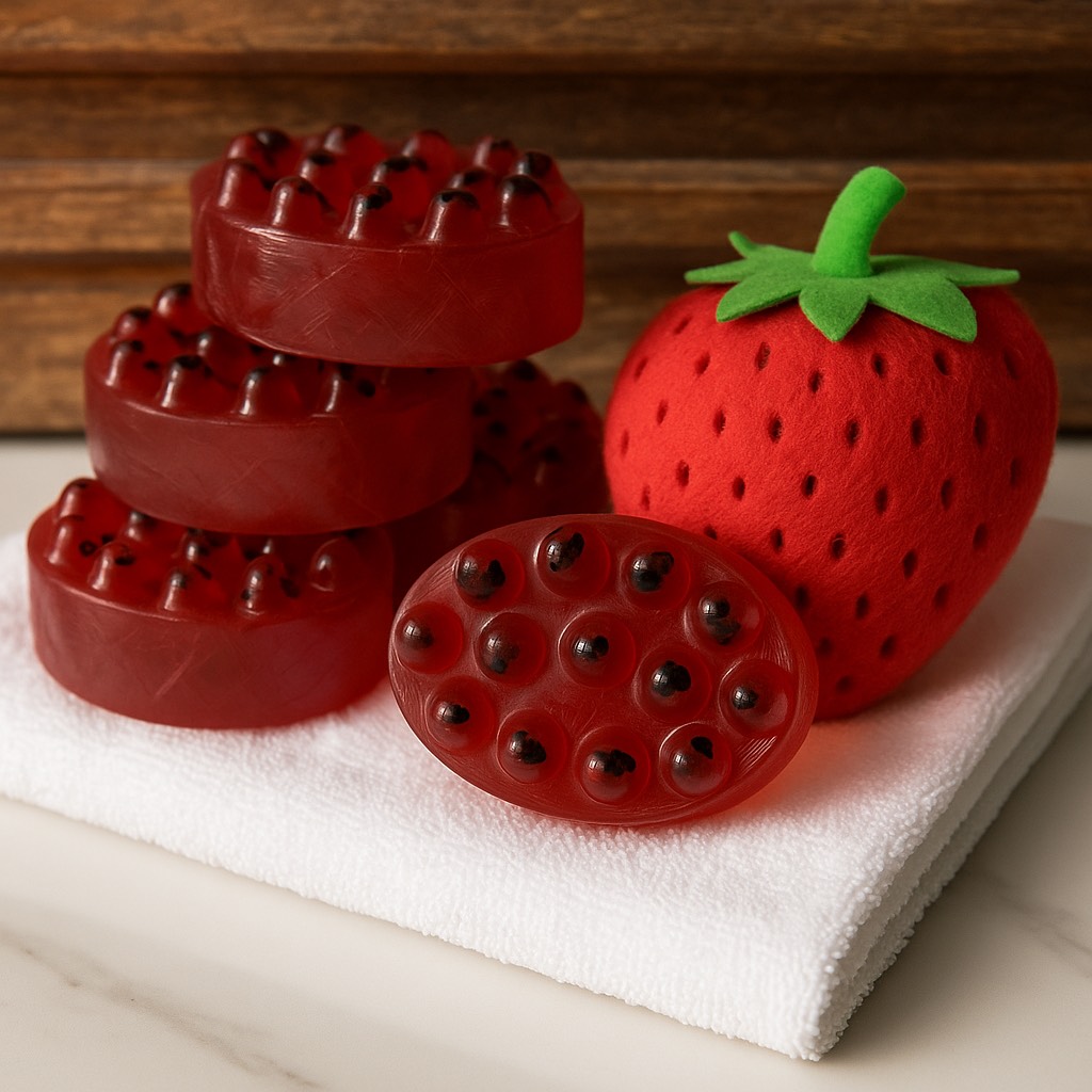 Sabonete Massageador e esfoliante de morango - Pele renovada e Perfumada. Não acompanha esponja.